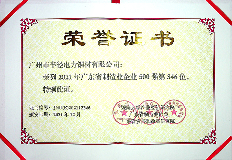 半徑連續(xù)12年榮登“廣東省制造業(yè)500強(qiáng)”榜單